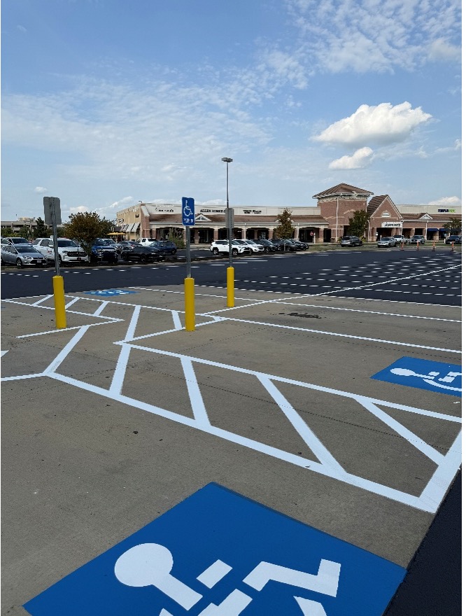 • Parking Lot Striping: Re-striped over 300 stalls, ADA spaces, arrows, and safety markings, delivering a crisp and professional finish.