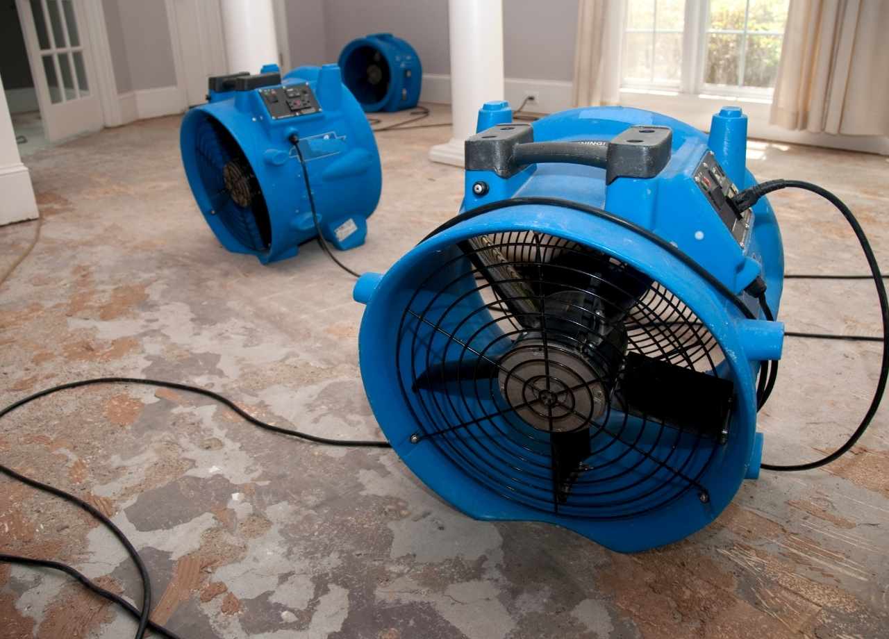 After water is removed, industrial fans and dehumidifiers reduce moisture in the air and building materials. Technicians monitor humidity levels to ensure complete drying.